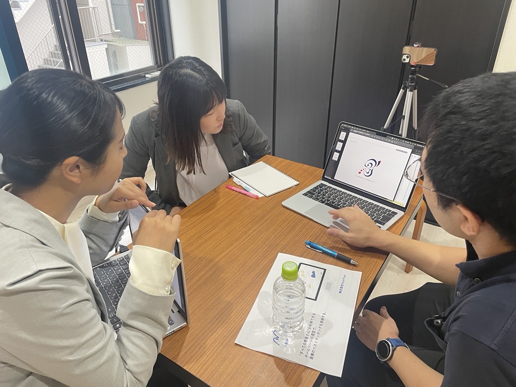 先生からはロゴデザインの進捗が共有され、ロゴデザインとの統一性や出したい印象についてディスカッションが交わされました。